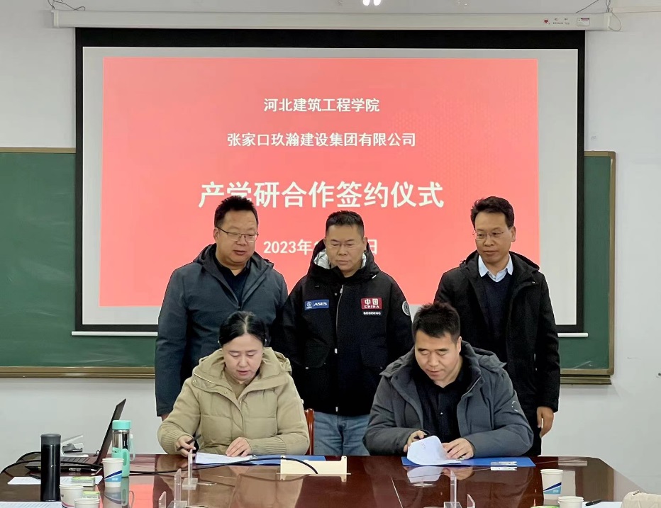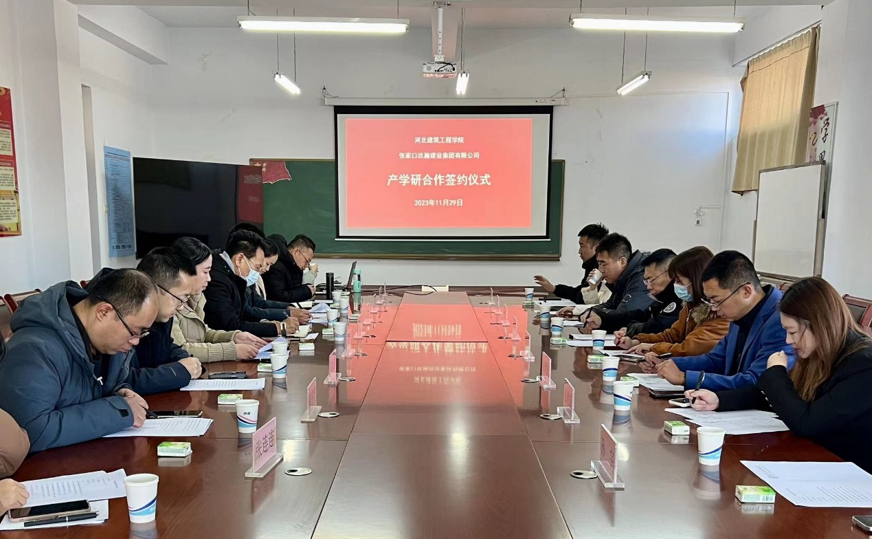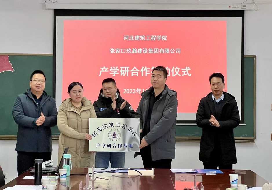 11月29日上午,hth华体育官网与玖瀚建设集团有限公司进行了校企产学研合作交流,并举行产学研合作签约及授牌仪式。参加仪式的有张家口市桥西区教育体育和科学技术局副局长冀红斌、张家口玖瀚建设集团有限公司总经理周澄文、副总经理张智彪、hth华体育官网科研处处长贾玉贵、hth华体育官网党委书记于江利、院长常青、部分教师及企业员工代表,会议由于江利书记主持。