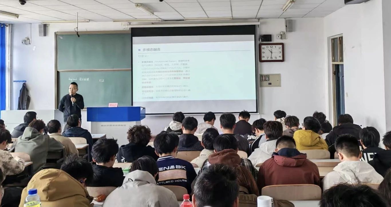 本次讲座聚焦多模态深度学习技术,探讨了计算机视觉与人工智能在跨场景应用中的范式革新。郑运昌老师从人工智能与计算机视觉的技术科普入手,应用跨模态对齐与融合等核心技术,结合智能安防、工业质检等场景案例,揭示了多模态深度融合技术的实践路径,为学生从事相关领域研究提供了创新思路与技术支撑。整场讲座内容丰富,逻辑清晰,现场互动积极,激发了学生的浓厚兴趣与思考。