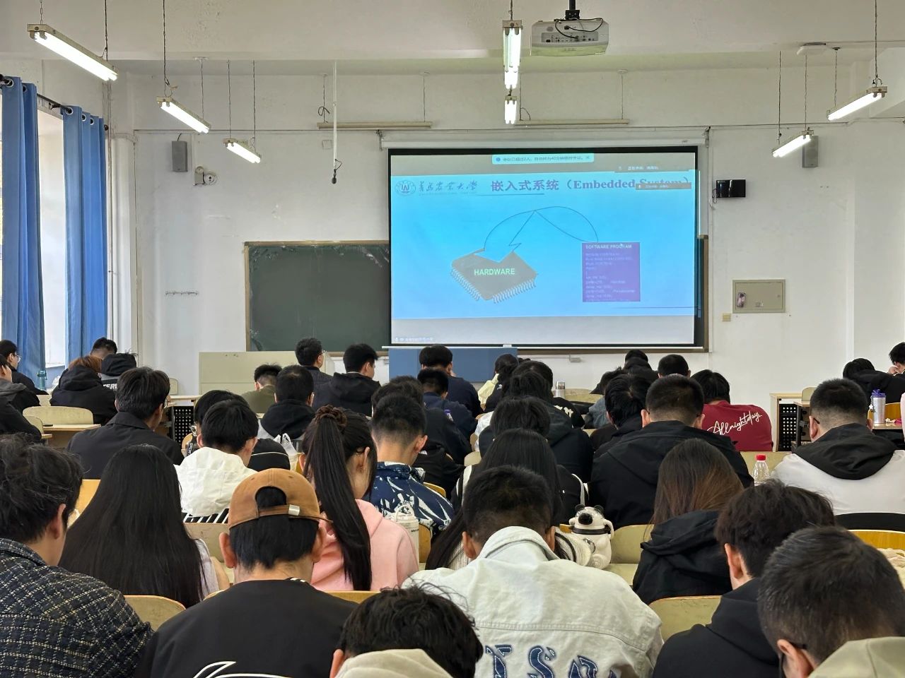 讲座中,油教授系统梳理了嵌入式技术的演进脉络,系统解构嵌入式开发的核心算法与硬件架构设计,接着深入技术核心,重点剖析了ARM架构处理器在功耗控制与实时响应方面的独特优势,并对比了不同型号处理器的应用场景。详细介绍了嵌入式系统在实际生活、工业制造业、农业中的应用。最后分析了嵌入式系统在未来的发展趋势。通过云端互动,他着重探讨了“技术研发需对接产业需求”的实践路径,并在线解答了师生关于嵌入式系统在物联网、智能制造等领域的应用疑问。