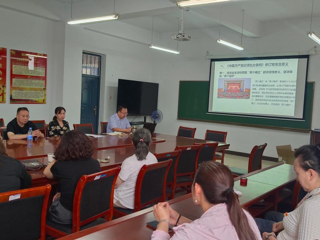为深入学习贯彻修订后的《中国共产党纪律处分条例》,贯彻落实习近平总书记关于全面加强党的纪律建设的重要论述,教育引导党员教师时刻保持政治定力、守住法纪底线,7月2日下午,hth华体育官网开展专题党课,学院党委书记于江利对《中国共产党纪律处分条例》进行深度解读,全体教职工党员参加了此次专题党课。