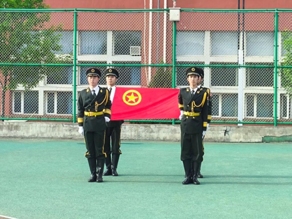 伴随着激昂的国歌,国旗护卫队迈着整齐有力的步伐,护送国旗入场。五星红旗冉冉升起,全体师生面向国旗行注目礼,爱国之情在心中澎湃,激励着他们以青春之力建设国家。